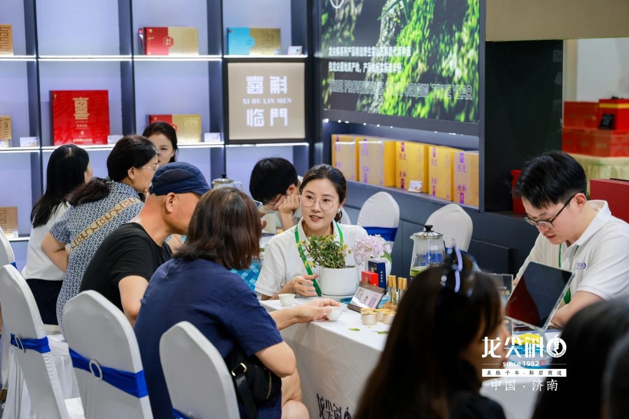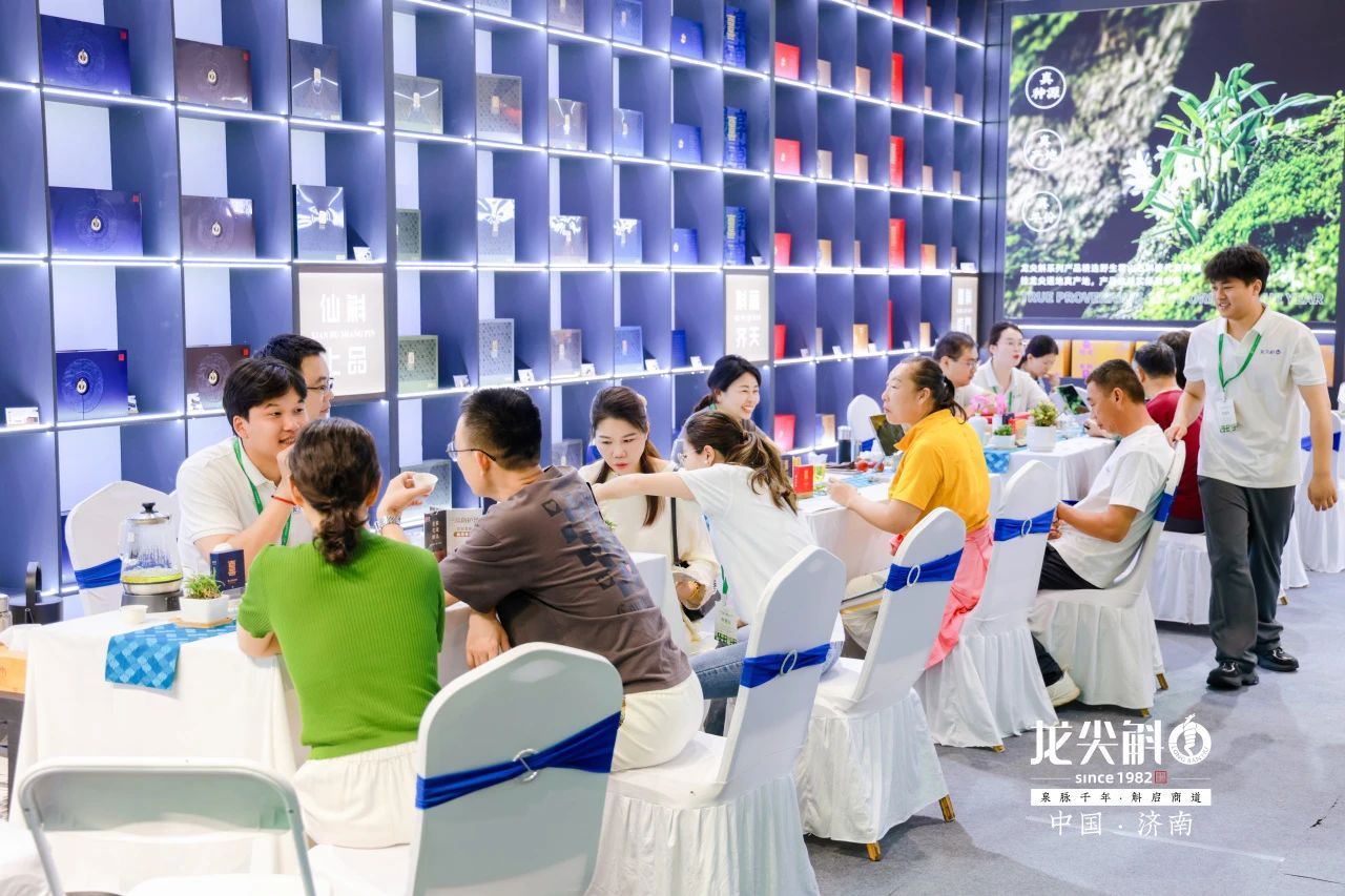 本届茶博会展览展示面积达30000㎡,设有普洱茶/乌龙茶区、全国名茶区、白茶区、绿茶区、紫砂区、茶器美学区、港澳台区等七大展区,展品涵盖六大茶类、茶器、茶具、茶服、茶家居、新式茶饮、茶叶深加工、茶包装、茶文创等10000+全产业链产品,共有展位1500个。 四天的时光,龙尖斛展位成为全场最热门的空间,门庭若市,人潮涌动, 这场以“泉脉千年·斛承商道”为名的盛会,不仅让龙尖斛的斛香浸透了泉城的夏日,更用一份超额完成的答卷,为这场双向奔赴画上了圆满的句号。